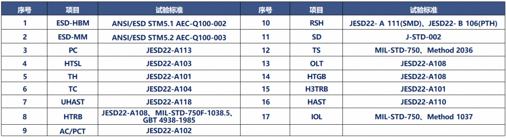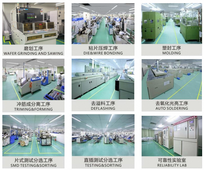 01 划片&粘片 目的: 为粘片做准备,将晶圆上的芯片分离为单颗。使用银胶(或绝缘胶),将芯片粘住框架上,便于后面的工 序流程。南宫28NG相信品牌的力量已有的粘片工艺有:共晶、点胶(绝缘胶、银胶)、焊料、锡膏、倒装等。 04 塑封&老热化 塑封目的:将粘片压焊好的产品的芯片与内引线包封好。 老热化目的:使环氧树脂完全反应,更好的保护产品。 02 胶固化 目的:Oven烘箱的精确温度控制对于胶的固化至关重要,确保了芯片的质量和性能。在芯片胶固化过程中,确保温度均匀性达到制造商推荐的标准。 05 电镀&成型分离 露出额引脚上镀上锡,便于贴板焊接。 将框架的边筋去除,并将引脚按设计要求折弯成型,便于之后的测试与使用。 03 压焊/焊线 目的:将芯片上的电极与框架上做好连接。 利用超声、热、力作用下,完成金(或铜、银合金) 线与焊接金属(电极或者框架镀层)之间的连接。 06 测试打印 电性能测试,合格品使用激光在塑封体打印需要的丝印。 生产工厂工艺流程 全流程封测工序生产,拥有国际一流的 生产设备。・磨、划设备: DISCO、 Neon Tech、Heyan Tech ・粘片设备: ASM、 TOSOK、 HOSON、 ACCURACY ・压焊设备: ASM、 K&S、 OE ・塑封设备: TOWA、 ASM、 KK、 Rishen ・去氧化光亮设备: SINYANG、 SOTEC ・成型分离设备: CORBEST、 MSL、 SM、PuBei ・测试设备: STATEC、 ChangChuan tech、 HongBang tech、 PowerTECH、AccoTEST ・分选、打印、编带设备: UENO SEIKI、ASM、 S-king、 Haye tech、 GDH tech ・激光打印、编带设备:PowerTECH、 TSM、 KEC 可靠性实验标准 质量体系认证证书 QMS证书 QMS证书 EMS证书 EMS证书 专利证书 专利证书 专利证书